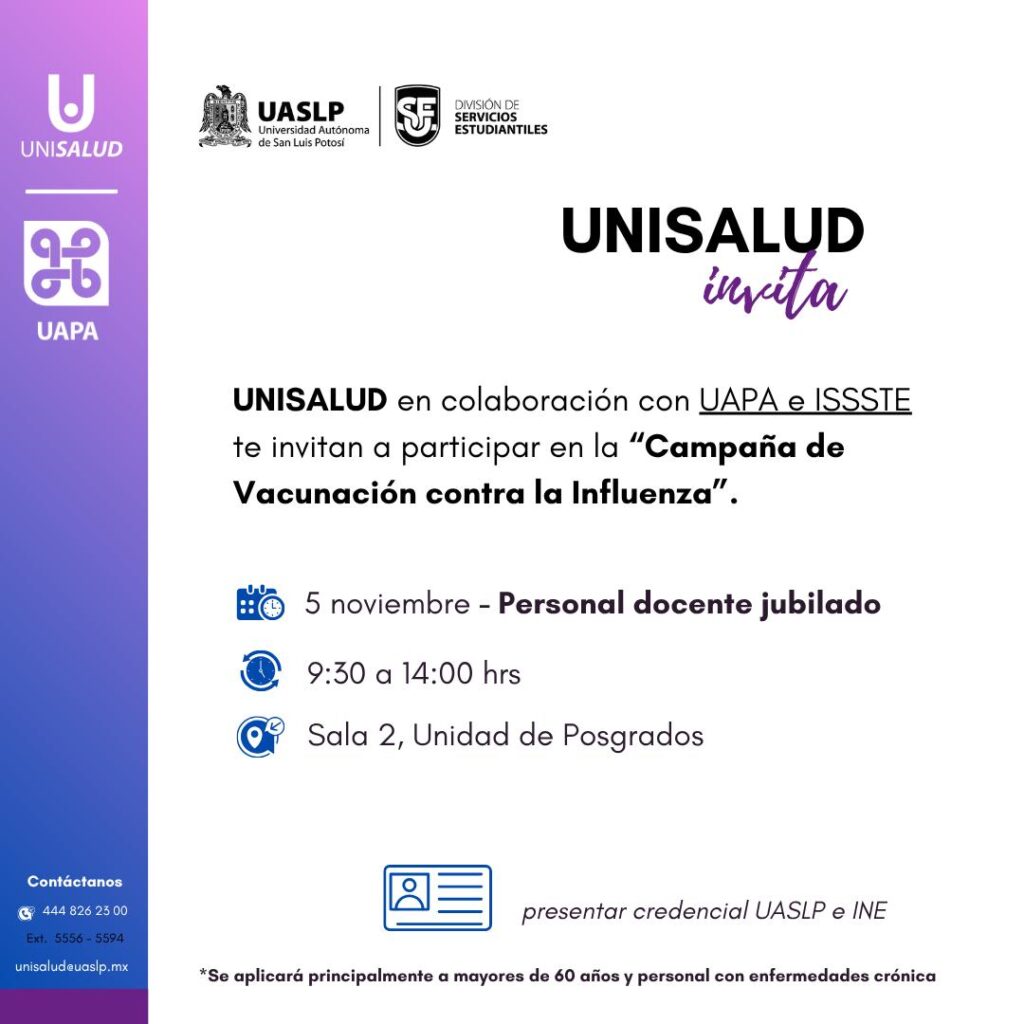 Buen día, la Mesa Directiva de la APAJ anexa aviso para la vacunación contra la Influenza.