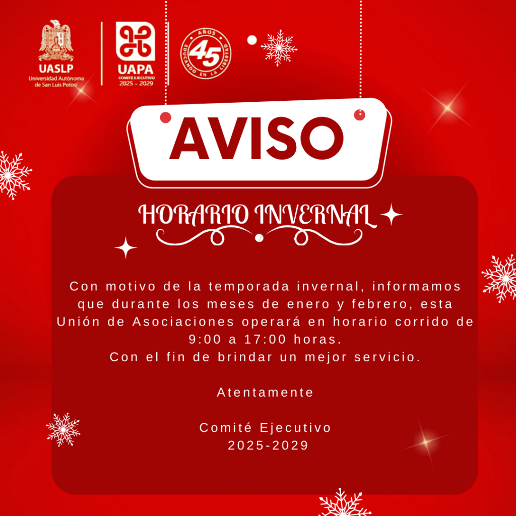 Buen día, la Mesa Directiva de la APAJ se anexa al aviso de la UAPA referente al horario de atención en sus oficinas